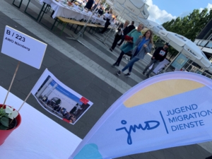 Die Teilhabe am gesellschaftlichen Geschehen und daran aktiv mitzuwirken, ist ein Ziel unserer Arbeit im JMD. Unsere Jugendlichen haben sich sehr gefreut dabei zu sein. Sie begegneten Menschen, die für sie eine Vorbildfunktion haben können, zum Beispiel ein Mitglied des Integrationsrats mit dem sie sich lange unterhielten.